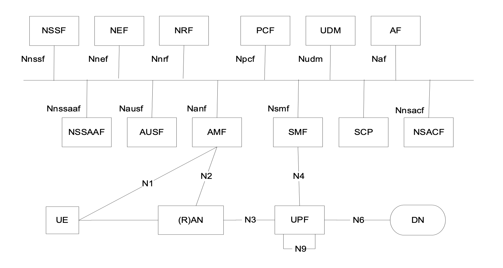 Nnssf, Nnrf, Npcf, Nudm, Nausf, Namf, Nsmf