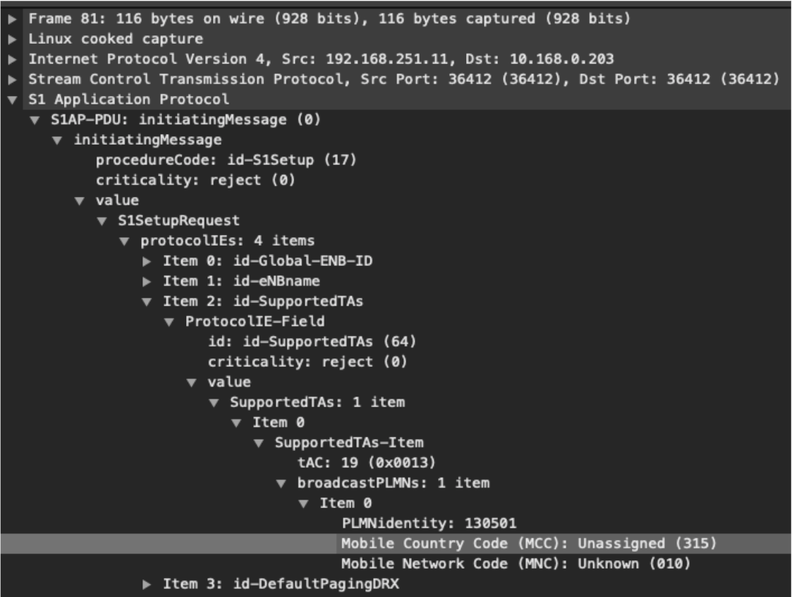 Example (the MCC is 315 and MNC is 010)