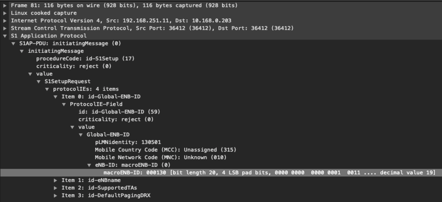 Example (the eNB ID is 19)
